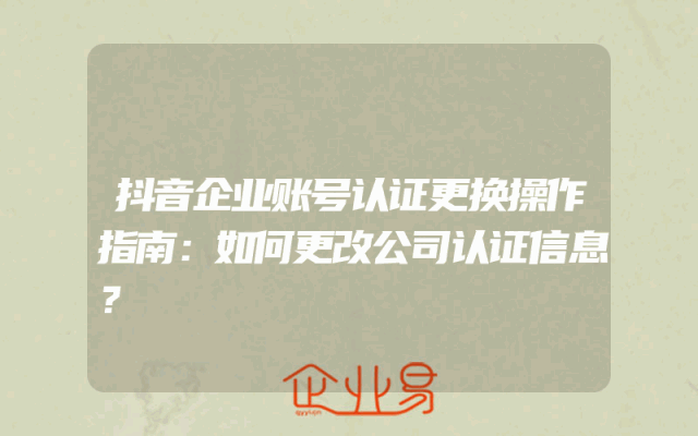 - 抖音企业账号认证更换操作指南:如何更改公司认证信息?