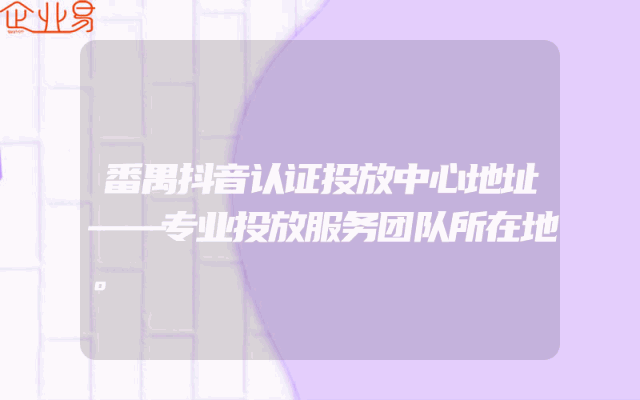 - 番禺抖音认证投放中心地址——专业投放服务团队所在地。