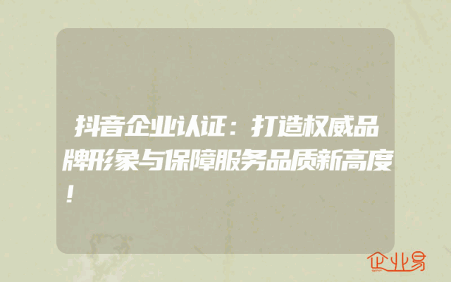 - 抖音企业认证:打造权威品牌形象与保障服务品质新高度!