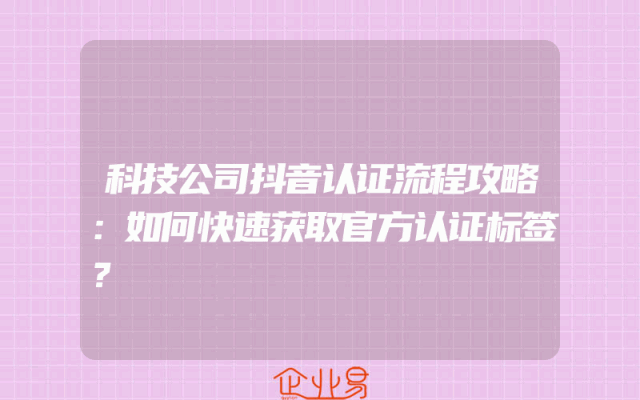 - 科技公司抖音认证流程攻略:如何快速获取官方认证标签?一、了解抖音认证的重要性随着抖音平台的不断发展和用户量的增长,越来越多的企业意识到在抖音上获得官方认证的重要性。科技公司在抖音上进行认证不仅能够提升自身的品牌形象和公信力,还能够直