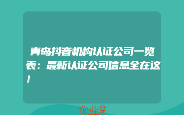 - 青岛抖音机构认证公司一览表:最新认证公司信息全在这!