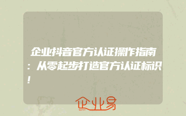 - 企业抖音官方认证操作指南:从零起步打造官方认证标识!