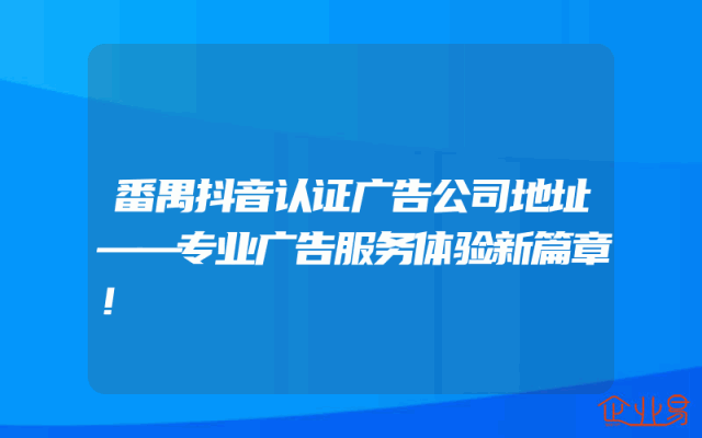- 番禺抖音认证广告公司地址——专业广告服务体验新篇章!