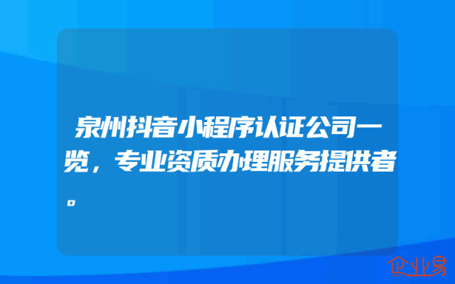 - 泉州抖音小程序认证公司一览,专业资质办理服务提供者。