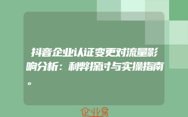 - 抖音企业认证变更对流量影响分析:利弊探讨与实操指南。