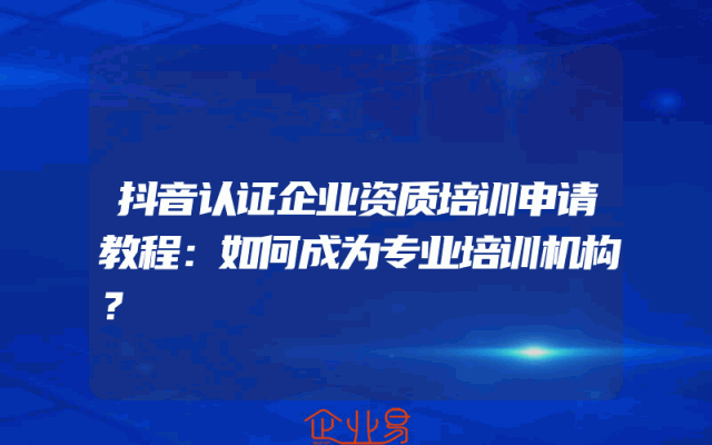 - 抖音认证企业资质培训申请教程:如何成为专业培训机构?