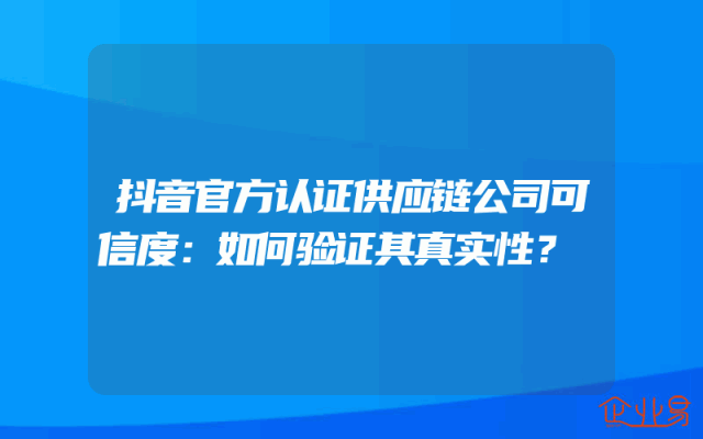 - 抖音官方认证供应链公司可信度:如何验证其真实性?