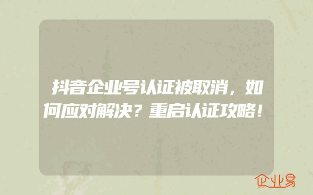 - 抖音企业号认证被取消,如何应对解决?重启认证攻略!