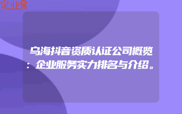 - 乌海抖音资质认证公司概览:企业服务实力排名与介绍。