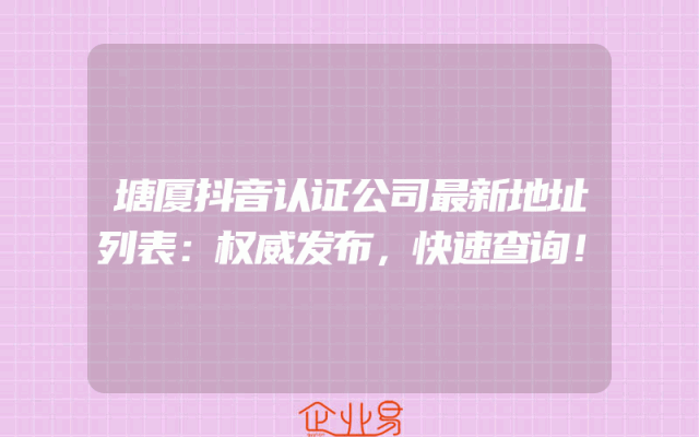 - 塘厦抖音认证公司最新地址列表:权威发布,快速查询!