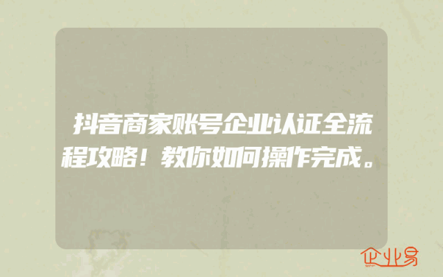 - 抖音商家账号企业认证全流程攻略!教你如何操作完成。