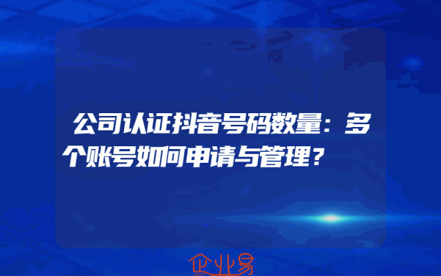 - 公司认证抖音号码数量:多个账号如何申请与管理?