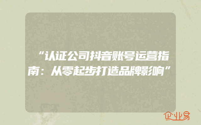- “认证公司抖音账号运营指南:从零起步打造品牌影响”