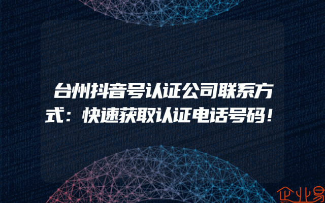 - 台州抖音号认证公司联系方式:快速获取认证电话号码!
