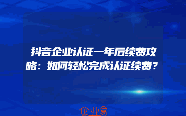 - 抖音企业认证一年后续费攻略:如何轻松完成认证续费?