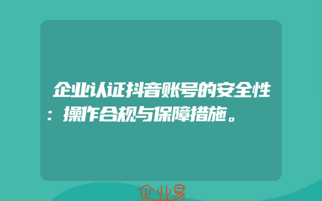 - 企业认证抖音账号的安全性:操作合规与保障措施。