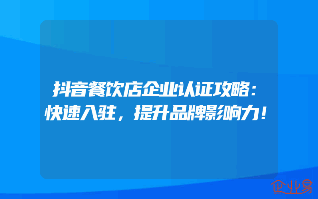 - 抖音餐饮店企业认证攻略:快速入驻,提升品牌影响力!