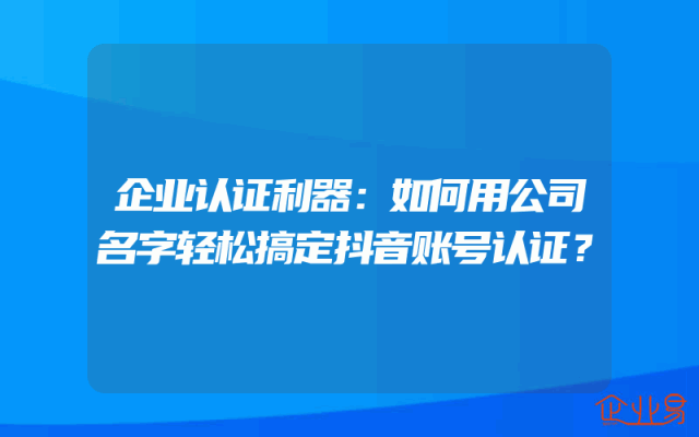 - 企业认证利器:如何用公司名字轻松搞定抖音账号认证?