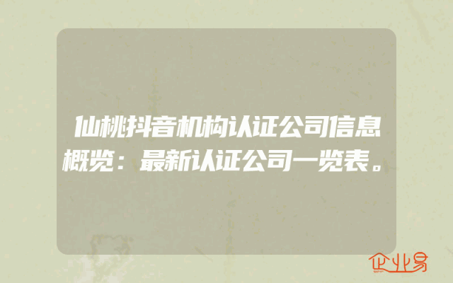 - 仙桃抖音机构认证公司信息概览:最新认证公司一览表。