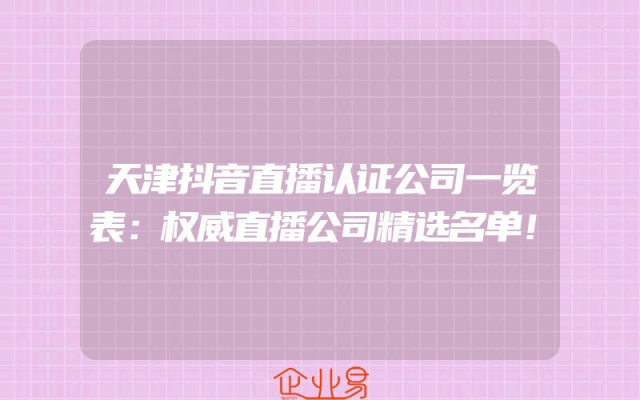 - 天津抖音直播认证公司一览表:权威直播公司精选名单!