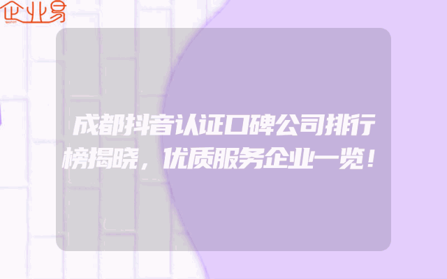 - 成都抖音认证口碑公司排行榜揭晓,优质服务企业一览!