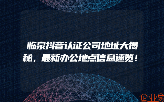 - 临泉抖音认证公司地址大揭秘,最新办公地点信息速览!