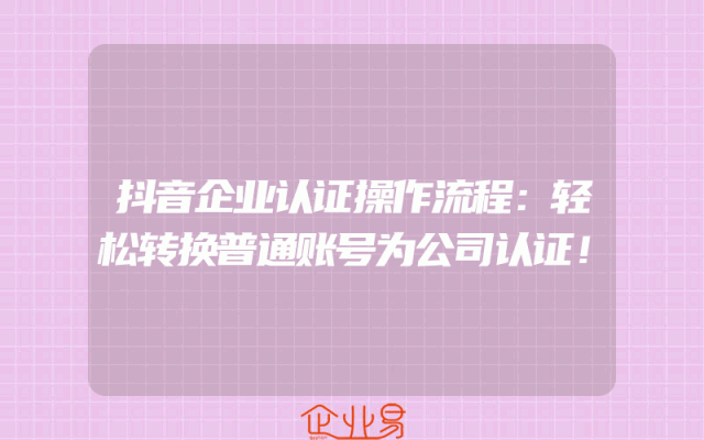 - 抖音企业认证操作流程:轻松转换普通账号为公司认证!
