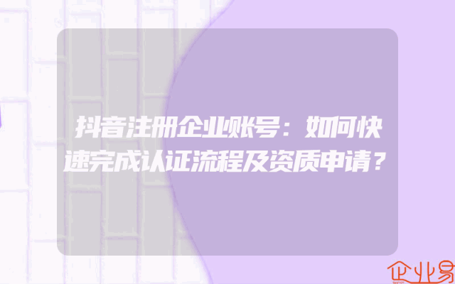 - 抖音注册企业账号:如何快速完成认证流程及资质申请?