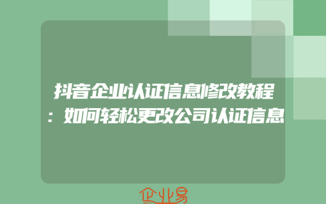 - 抖音企业认证名称修改教程:如何轻松更改认证公司名称