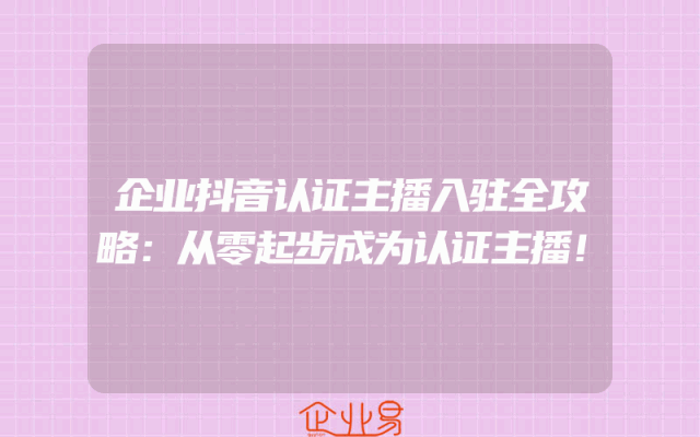 - 企业抖音认证主播入驻全攻略:从零起步成为认证主播!
