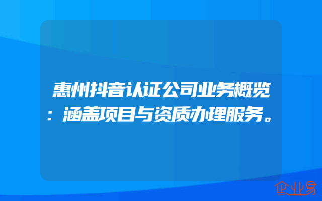 - 惠州抖音认证公司业务概览:涵盖项目与资质办理服务。