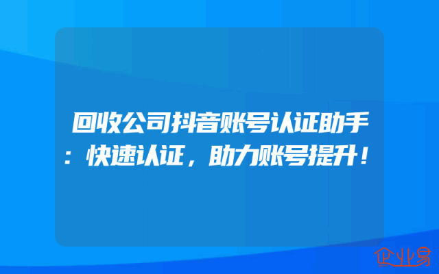 - 回收公司抖音账号认证助手:快速认证,助力账号提升!