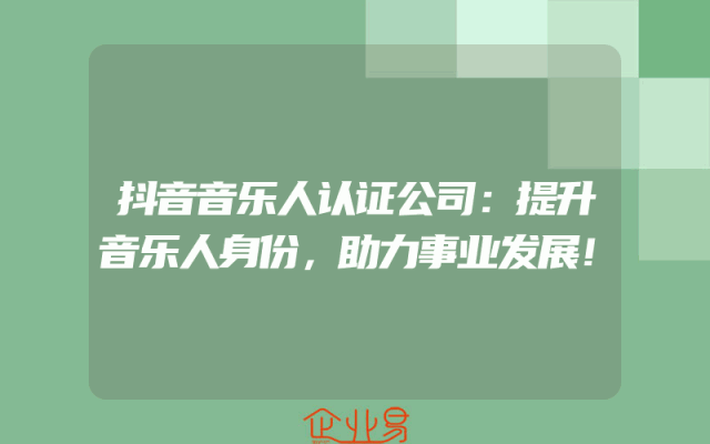 - 抖音音乐人认证公司:提升音乐人身份,助力事业发展!