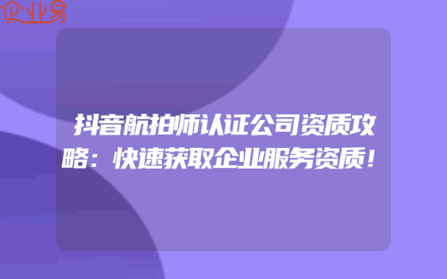 - 抖音航拍师认证公司资质攻略:快速获取企业服务资质!