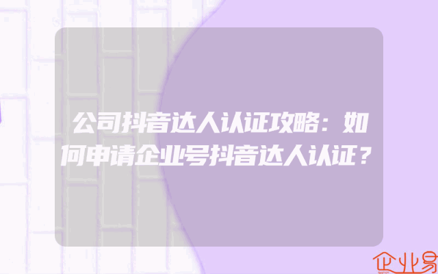 - 公司抖音达人认证攻略:如何申请企业号抖音达人认证?