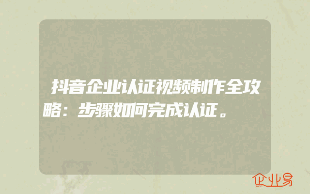 - 抖音企业认证视频制作全攻略:步骤如何完成认证。