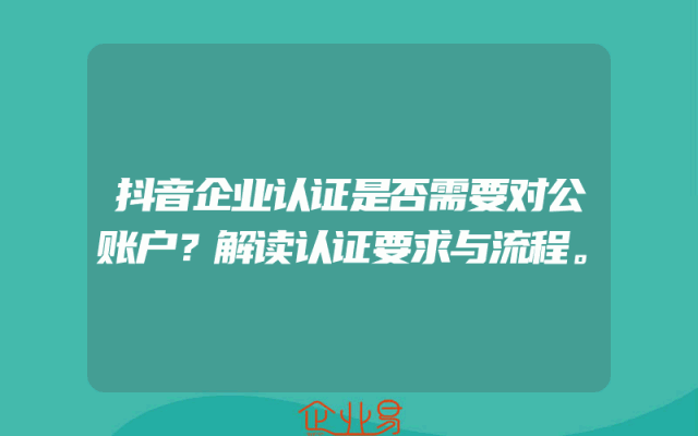 - 抖音企业认证是否需要对公账户?解读认证要求与流程。