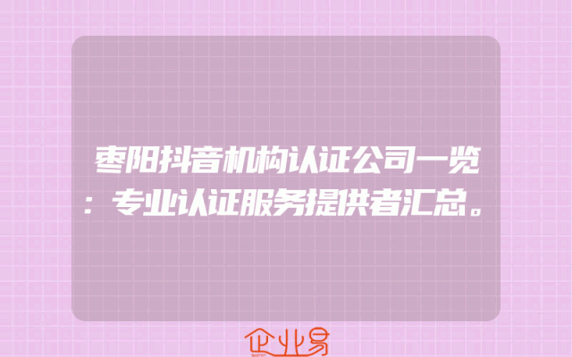 - 枣阳抖音机构认证公司一览:专业认证服务提供者汇总。