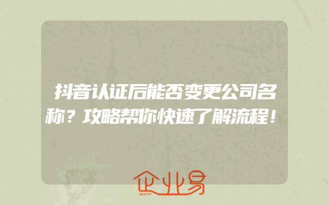 - 抖音认证后能否变更公司名称?攻略帮你快速了解流程!