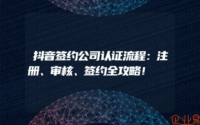 - 抖音签约公司认证流程:注册、审核、签约全攻略!