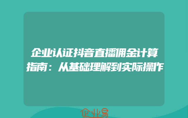 - 企业认证抖音直播佣金计算指南:从基础理解到实际操作