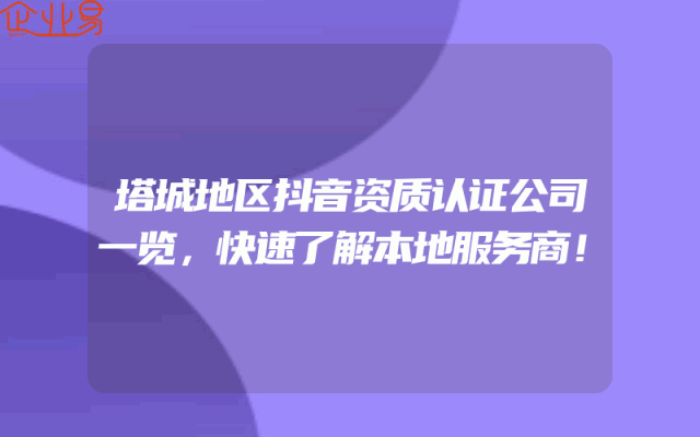 - 塔城地区抖音资质认证公司一览,快速了解本地服务商!