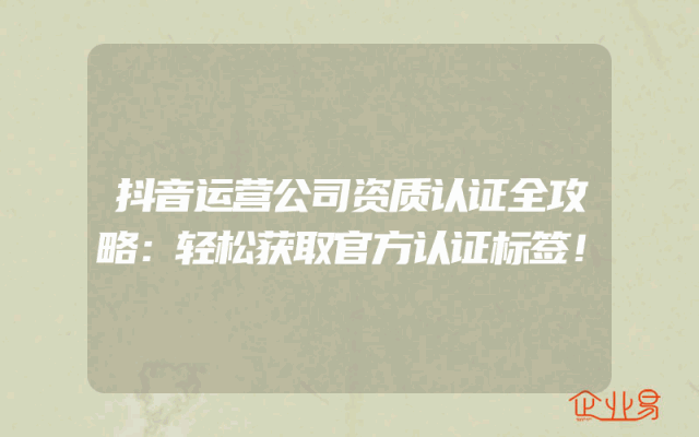 - 抖音运营公司资质认证全攻略:轻松获取官方认证标签!