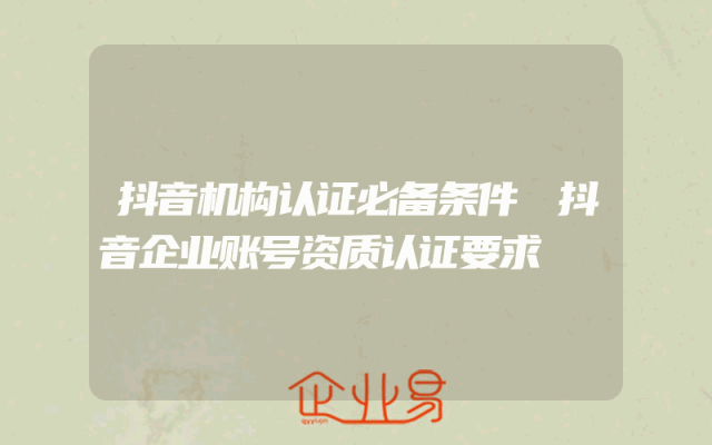- 抖音机构认证必备条件 抖音企业账号资质认证要求