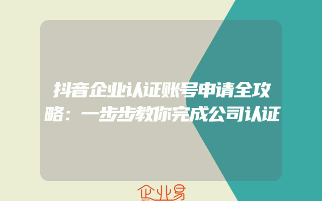 - 抖音短视频公司如何快速完成企业认证?流程攻略在这!