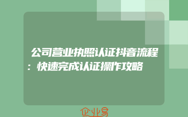 - 公司营业执照认证抖音流程:快速完成认证操作攻略