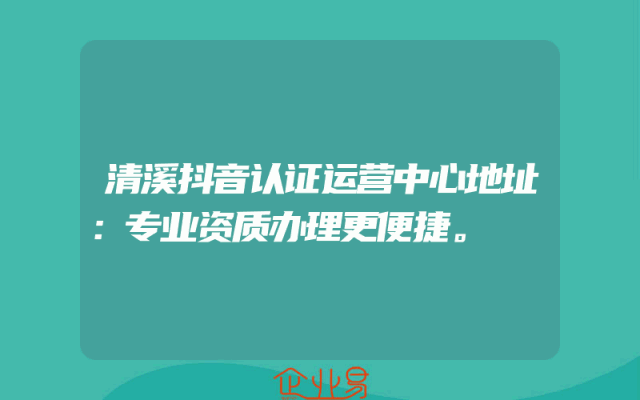 - 清溪抖音认证运营中心地址:专业资质办理更便捷。