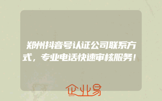 - 郑州抖音号认证公司联系方式,专业电话快速审核服务!