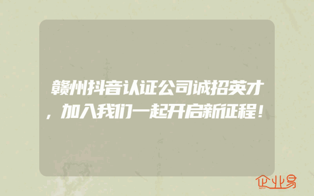- 赣州抖音认证公司诚招英才,加入我们一起开启新征程!