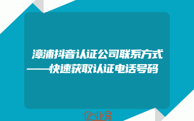 - 漳浦抖音认证公司联系方式——快速获取认证电话号码
